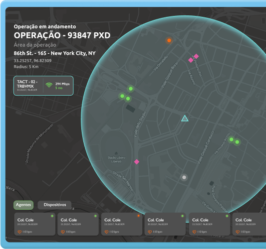 The TACT-G project was a major challenge, creating a secure, satellite-based computer network for security, police, military, and healthcare operations. We analyzed, designed, and developed the TACT-G system, enabling communication between devices with recorded and transcribed audio chat, recording the position of agents and tracking devices, real-time camera transmission with interactive device APIs, and the setup of additional system operations.